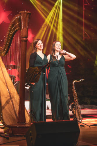unterschiedlichen Klangfarben von Harfe und Saxophon verschmelzen