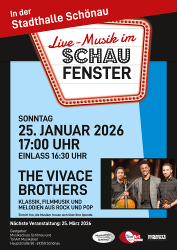 Hier findet Ihr die Daten zu unseren Schaufensterkonzerten sowie ein Archiv der vergangenen Veranstaltungen.